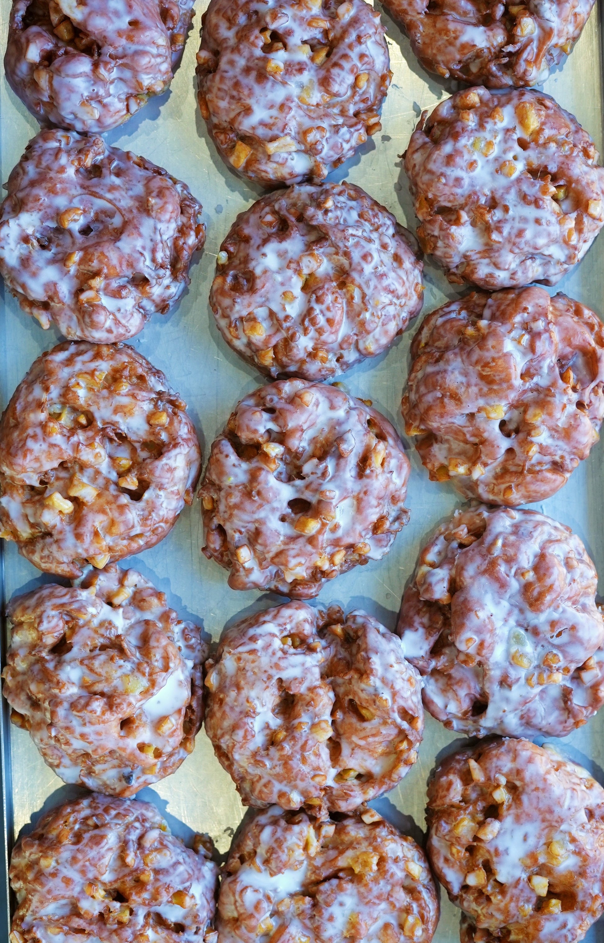 Our Apple Fritter donut is a classic American pastry that is perfect any time of year. This mouth-watering treat is made with a fluffy, yeasty dough that is mixed with cinnamon and chunks of fresh sweet apple. It is then deep-fried to perfection and coated in a sticky glaze that perfectly complements the apple and cinnamon flavours. The texture of the fritter is delightfully crispy on the outside and soft on the inside, making it a satisfying indulgence. Whether enjoyed with a cup of coffee in the morning or as an afternoon snack, an apple fritter donut is a delicious treat that certainly won't disappoint!